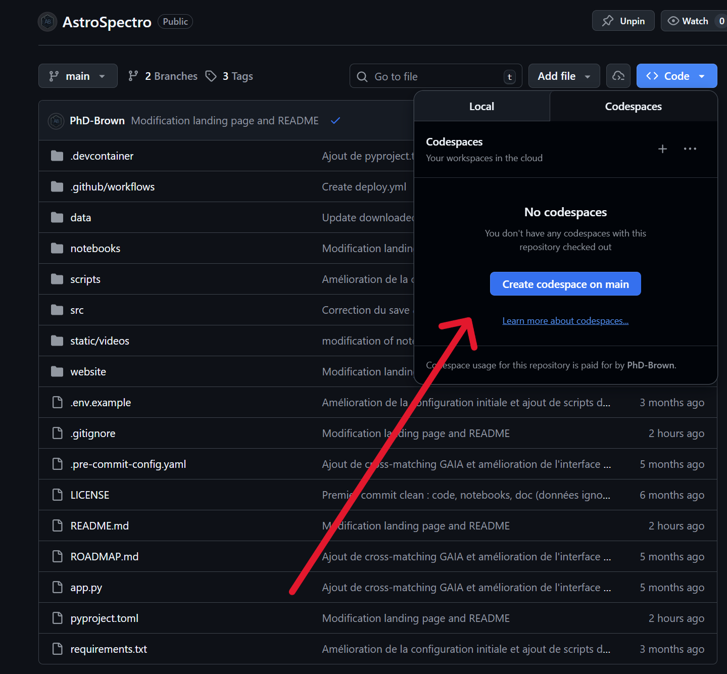 Si vous utilisez GitHub Codespaces, gardez en tête que l'utilisation consomme des minutes de calcul (limitées, même pour les étudiants).